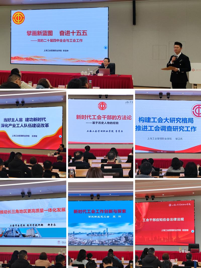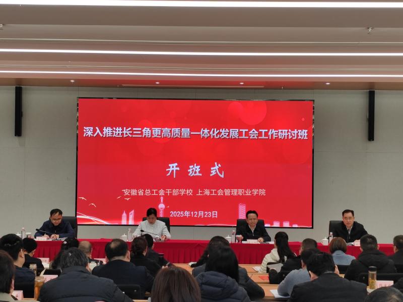 为深学笃行党的二十届四中全会精神,精准锚定长三角一体化发展战略赋予工会工作的时代使命,全面提升工会干部服务大局履职担当的过硬本领,12月22日至27日,安徽省总工会干部学校在上海成功举办深入推进长三角更高质量一体化发展工会工作研讨班。省总工会党组成员、副主席朱颖出席开班式并讲话,上海工会管理职业学院党委副书记、院长李友钟致辞,省总工会组织部部长余周波参加开班式,省总工会机关党委专职副书记,省总干校党总支书记、校长刘道友主持开班式,全省80余名地方工会负责同志参加培训。