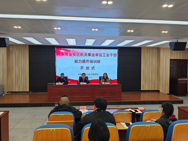 11月3日至11月6日,六安市金安区机关事业单位工会干部能力提升培训班在省总干校举办,省总干校党总支副书记、副校长杨玲致欢迎辞,六安市金安区总工会党组书记、常务副主席郑兴作开班动员讲话,六安市金安区总工会党组成员、副主席蒯文俊主持开班式。来自六安市金安区各乡镇(街道)、园区、区直各单位(系统)的52名工会干部参加此次培训。